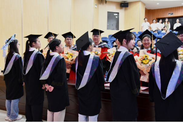 Afterwards, the degree awarding ceremony was held in our branch venue. Members of the degree evaluation sub-committee of the college set the crowns, awarded the degree certificates and took a group photo for the graduates.