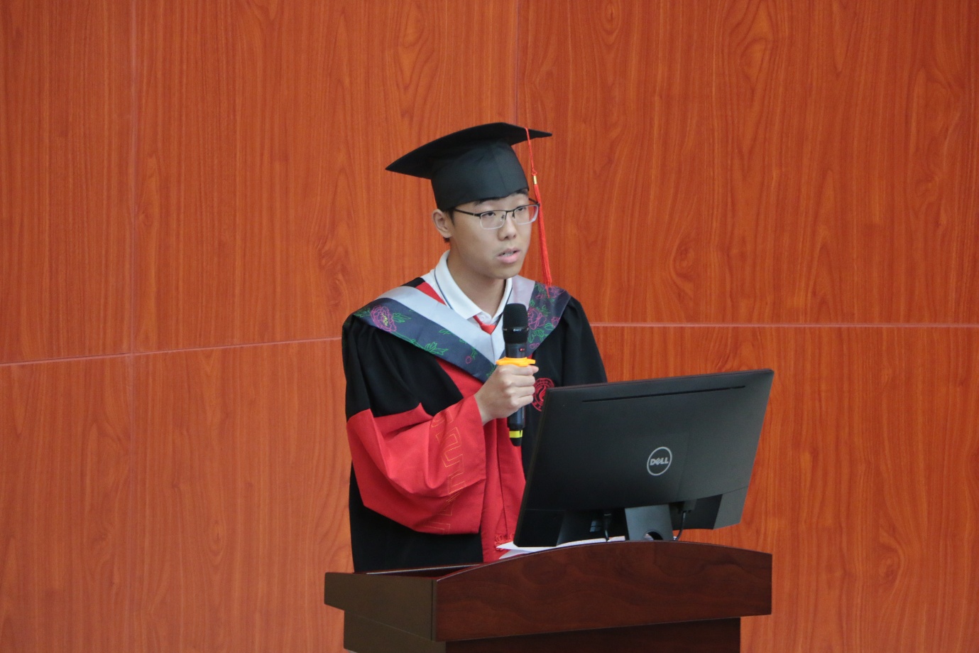 毕业生代表张宝磊表达了对母校和学院的深深感恩之情。他回顾了在生命科学与技术学院的科研经历和成长岁月,呼吁广大生科学子秉承“勤恳朴诚,厚学致新”的校训精神,将个人理想融入国家发展,用所学知识服务社会,用青春担当回应时代召唤。