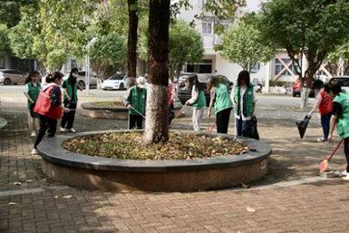 3月10日下午三点,我院20余名名志愿者在西大社区党委副书记班茗茗的指导下有序开展了“学雷锋”的志愿服务活动。志愿者们清理了社区门前的杂草,清扫了校园里的垃圾,将校园里的车子摆放整齐。志愿者们用实际行动践行着雷锋精神,为美丽校园的建设献出自己的力量。