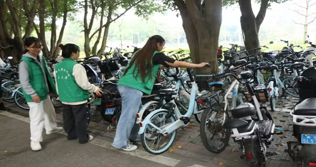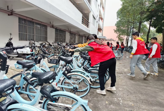 3月12日下午,我院80余名学生在学校东门,东27栋学生公寓及学校南门三个地点整理摆放共享单车。凌乱的车辆一辆辆被移到了规范的停车位,劳动的同学滑落的一滴滴汗水融入了雨滴之中。一个个动作,化为了同学对雷锋精神的传承。