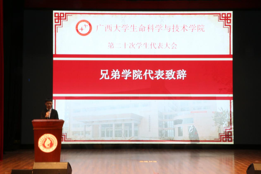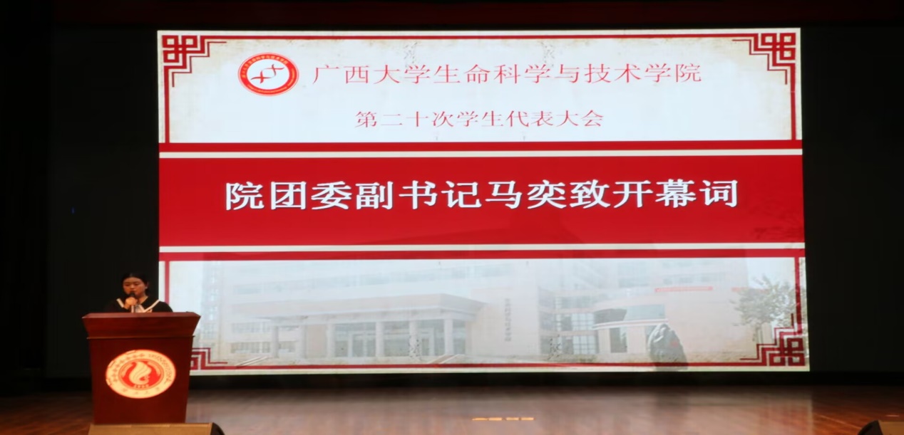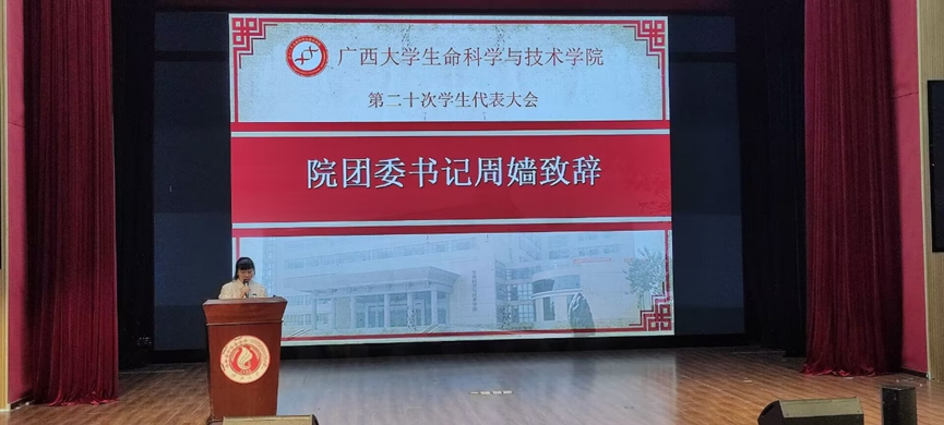 10月23日下午,我院第二十次学生代表大会在大学生活动中心一楼小剧场召开。学院党委书记莫柏林老师、党委副书记曾海艳老师、团委书记周嫱老师、团委副书记马奕老师、学工组俸雪老师、广西大学校学生会代表,兄弟学院学生会代表以及我院各班级代表出席本次会议。本次大会由学工组俸雪老师主持。