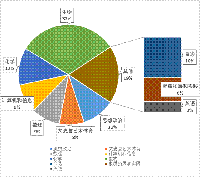 体现了在思想品德、生物为主体和化学/信息为两翼、个性化发展、人文情怀、