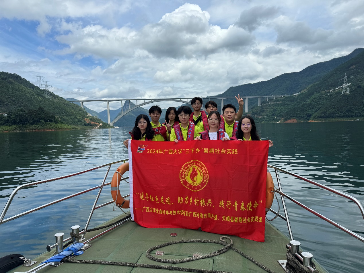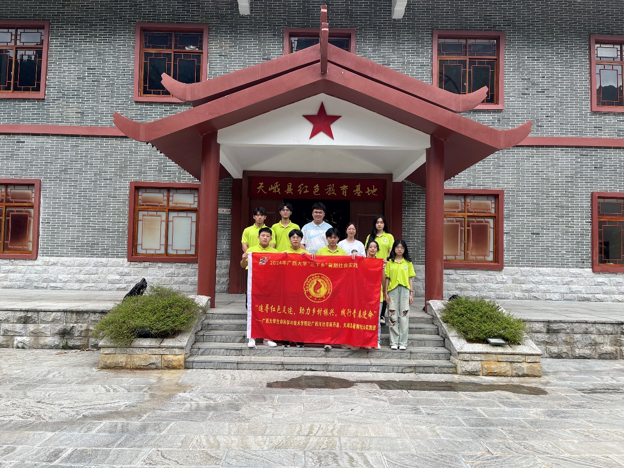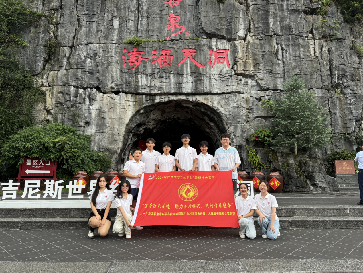 为深入学习宣传贯彻党的二十大精神和2024年习近平总书记五四青年节对全国广大青年寄语精神,充分发挥社会实践在高校思想政治引领工作中的重要作用,2024年7月17日-7月20日,广西大学生命科学与技术学院暑期社会实践团赴河池市南丹县、天峨县围绕产业调研、访企拓岗、铸牢中华民族共同体意识、寻访新时代伟大成就、追溯红色足迹等主题开展了为期4天的暑期社会实践活动。此次暑期社会实践团由生命科学与技术学院党委副书记、纪委书记覃文月带队,副院长赵帅、生物技术系副主任黄罗冬、团委书记马奕及10名学生代表参加此次活动。