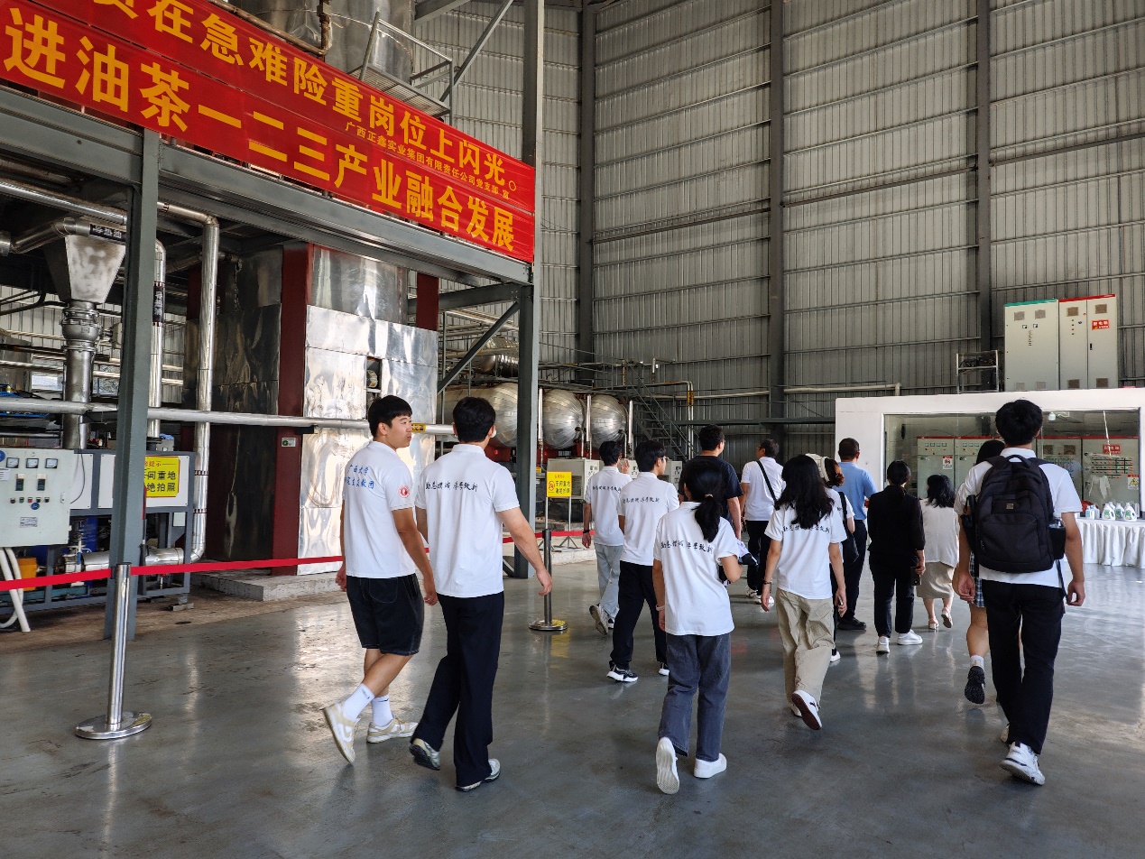 7月18日下午,为了解行业发展情况,加深校企合作,实践团成员走访参观了广西正鑫实业集团的白裤瑶(南丹)大健康产业园,对高山油茶种植项目、中药材种植加工项目、生态养殖场项目这三个项目进行了重点考察。企业代表与实践团进行座谈,就校企合作、成果产出、实习基地建设等达成多项合作意向。
