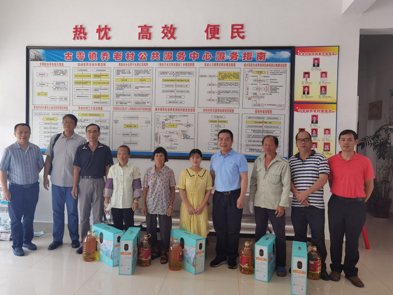 师生党员与乔老村驻村第一书记和村“两委”干部进行了座谈,深入了解乔老村的发展历程和目前巩固脱贫攻坚成果、有效衔接乡村振兴的工作开展情况。共同交流了党史学习教育的特色和亮点工作,一起畅谈主要学习收获和心得体会。随后,师生党员看望慰问了乔老村的脱贫户代表,为他们送上被子、食用油等慰问品,学习参观了村办企业、“我为群众办实事”项目、乔老河两岸乡村发展新貌和石漠化综合治理示范区。