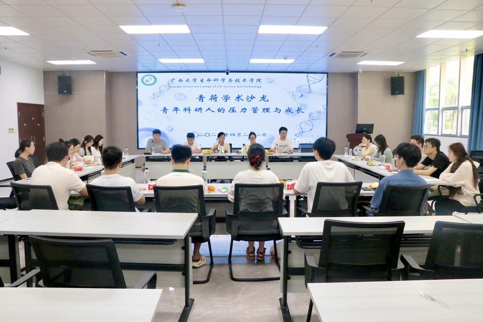 4月22日下午,青荷学术沙龙“青年科研人的压力管理与成长”座谈会在国重室北107教室举行。我院青年教师傅琼、吕波燕、徐益、郭昊,院团委书记马奕以及各研究生班级学生代表参加此次座谈会。会议由院研究生会主席团成员宁昊主持。