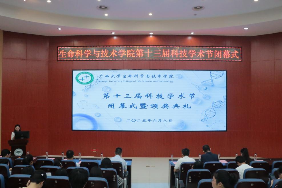 4月20日,广西大学生命科学与技术学院第十三届科技学术节在圆形报告厅正式开幕。学院领导班子、院各系(中心)主任、辅导员、兄弟学院学生代表以及我院300余名学生代表参加本次开幕式。开幕式由院党委副书记覃文月主持。