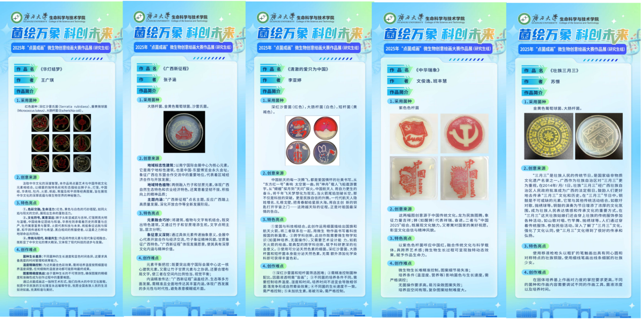 为深入学习贯彻党的二十届三中全会精神和全国教育大会精神,进一步弘扬“创新创造、奋勇争先、全面一流”的广西大学“双一流”精神,引导和激励全院学生提高学术创新能力,营造浓厚的科技创新氛围,我院于2025年4月-6月成功举办第十三届科技学术节。本届科技学术节以“生命之光,科创未来”为主题,开展了生物知识竞赛、“点菌成画”微生物创意绘画大赛、青荷学术沙龙、实验技能竞赛等子活动。