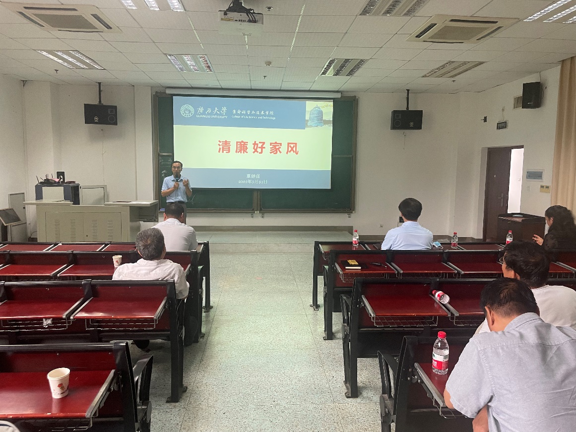 会议强调,全院教职工要坚定为党育人、为国育才的初心使命,严格遵守教师职业行为十项准则,廉洁从教,担当实干,营造风清气正、崇廉尚洁的文化氛围和政治生态,全面推进清廉学院、清廉家庭建设。