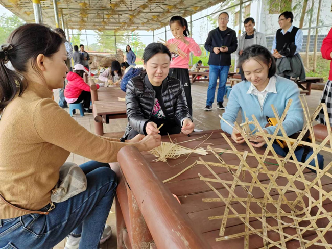 为进一步增进学院女教职工之间的交流与学习,教育引导教职工传承弘扬广西民族文化,铸牢中华民族共同体意识,11月25日上午,学院分工会组织学院及亚热带国家重点实验室女教职工赴南宁市邕宁区慧竹渔耕园开展以“凝聚力量 分享快乐”为主题的传统竹编工艺学习体验活动。