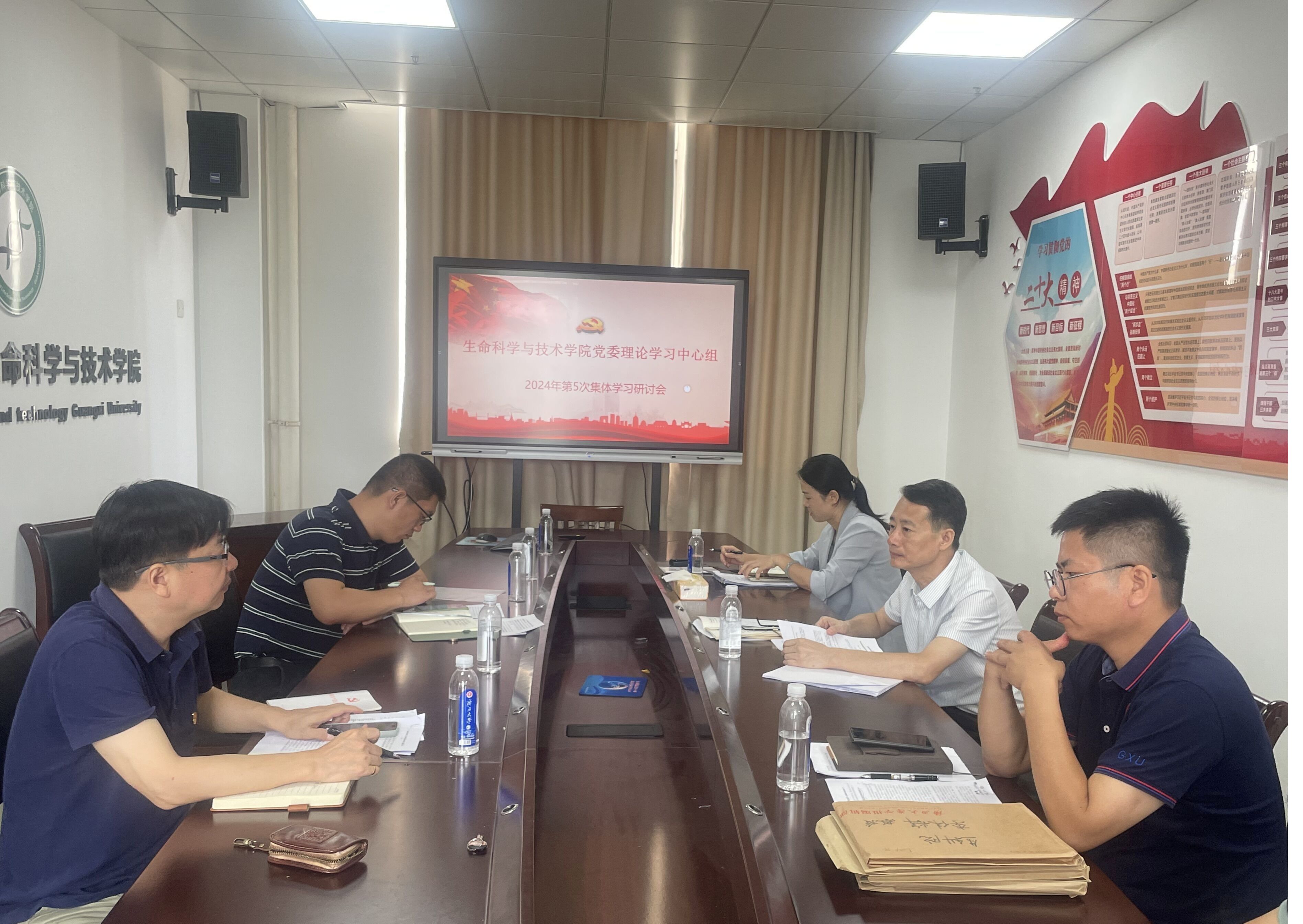 学习研讨会重点学习了《中共中央政治局会议决定今年7月召开党的二十届三中全会》《全面深化改革开放,为中国式现代化持续注入强劲动力》《习近平主持召开企业和专家座谈会》《习近平在山东考察》《习近平在中共中央政治局第十一次集体学习时的讲话》《习近平主持中共中央政治局第十二次集体学习》《习近平致信祝贺中国工程院建院30周年》《广西大学关于进一步压实学院师德师风建设直接责任的通知》《习近平主持中共中央政治局第十四次集体学习》《全国高校毕业生等青年就业创业工作视频会议在京召开》《关于开展2024届高校毕业生就业“百日冲刺”行动的通知》《关于开展2024届高校毕业生就业创业工作实地督查的通知 》《习近平总书记关于全面加强党的纪律建设的重要论述》《习近平对学校思政课建设作出重要指示》《广西贯彻落实〈普通高等学校教师党建和思想政治工作质量标准(试行)〉重点举措》《广西大学实验室安全专项整治2024年整改年工作方案》《关于做好2024年度实验室安全工作的通知》等文件资料;研究和部署学院学习贯彻习近平总书记重要讲话精神、全面从严治党、科研创新、师德师风、就业创业、实验室安全等工作。卢洁、赵帅、李伟辉、覃文月、马奕、芋来生等同志依次作了重点发言,其他参会同志围绕主题、联系实际进行了交流发言。