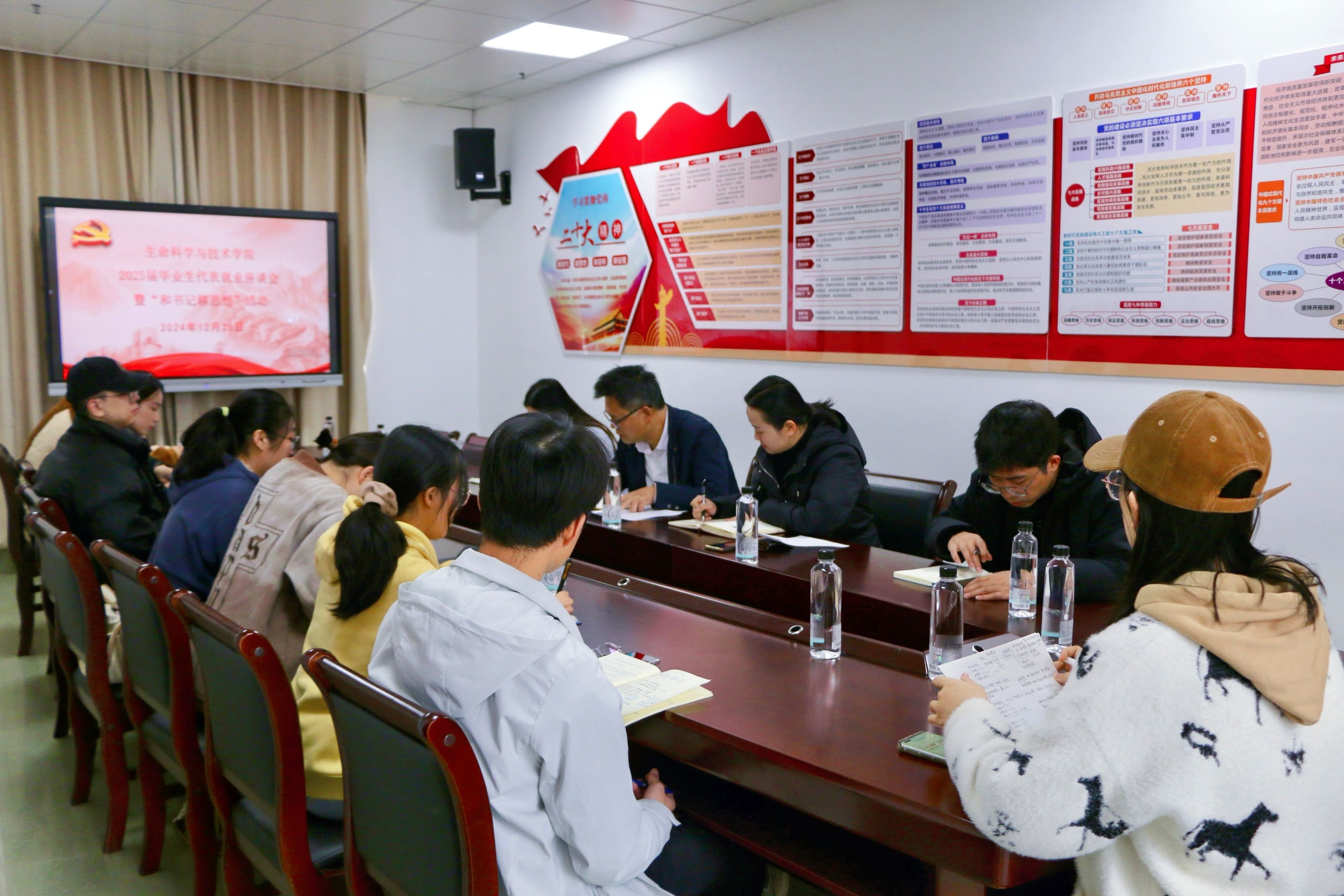 会上,覃文月副书记向大家通报了我院2025届毕业生就业进展情况。随后,毕业生代表们逐一发言,分享了自己的就业规划、求职经历以及心得感悟,并围绕本班同学的就业现状和思想动态展开了深入交流和讨论,阐述了当前求职过程中遇到的一些困难和问题。