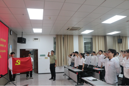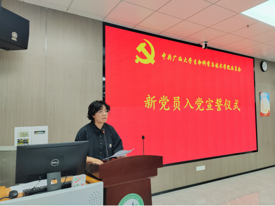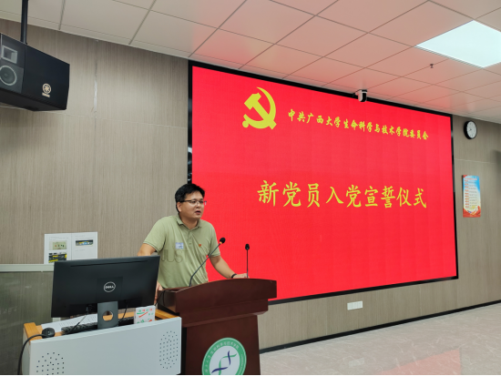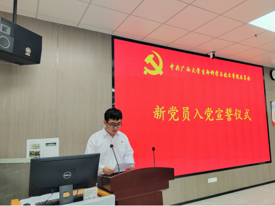 生物学2023级硕士研究生温宇皓作为新党员代表发言,他承诺从坚定信念、脚踏实地、严守纪律三方面严格要求自己。以宣誓为新起点,在理论学习、服务人民、攻坚克难中践行党员担当,将个人理想融入国家科技自强伟业。